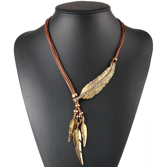 • Alloy Feather Statement Necklaces